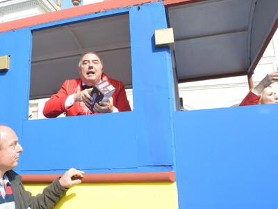 *Παρόντες στην πλ. Γεωργίου την ώρα της παρέλασης ήταν και ο Δήμαρχος Πατρέων Γιάννης Δημαράς καθώς και η φετινή βασίλισσα του Καρναβαλιού Ιωάννα Κυπραίου.