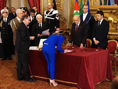 Την αποκαλούν ήδη «πασιονάρια» του Ρέντσι, ενώ τα παρατσούκλι της είναι jaguar. Η μόλις 33 ετών Μαρία Ελενα Μπότσι είναι μια γυναίκα κλασικής και δυναμικής ομορφιάς, που μόλις ορκίστηκε υπουργός Συνταγματικών μεταρρυθμίσεων στην κυβέρνηση του Ματέο Ρέντσι και έχει τρελάνει τα φλας. Ακόμη και ο τρόπος που έσκυψε για να υπογράψει μετά την ορκωμοσία της, έχει αποτυπωθεί με χιλιάδες εικόνες που κυκλοφορούν στα διεθνή μέσα ενημέρωσης. Ολη η στάση της και κυρίως το βλέμμα της, λένε ένα πράγμα: ήρθε για να μείνει...