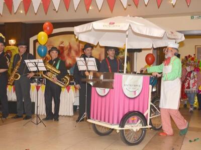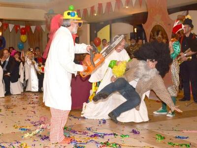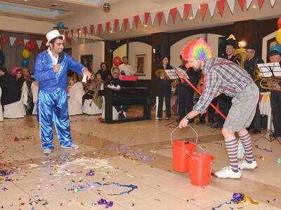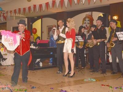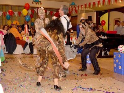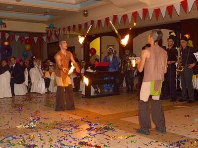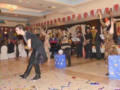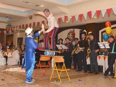 Κλόουν και ταχυδακτυλουργοί, μπαλέτο και τίγρεις, ζογκλέρ και ακροβάτες, έδωσαν μία διαφορετική διάσταση στο σόου, που τα μέλη του Οργανισμού προετοίμασαν για τους προσκεκλημένους του χορού. Ένας φανταστικός διάκοσμος, μια υπέροχη μουσική (με χορούς όλων των εποχών) αλλά και ο απαραίτητος σοκολατοπόλεμος, συμπλήρωσαν τα εδέσματα του «Συμποσίου» δημιουργώντας μια μοναδική αποκριάτικη βραδιά.