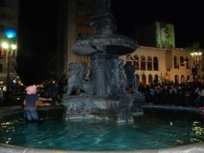 Λίγο η μουσική, λίγο το ποτό , λίγο το κέφι και κάποιοι δεν δίστασαν να μπουν τα ξημερώματα του Σαββάτου στο συντριβάνι της πλατείας Γεωργίου .