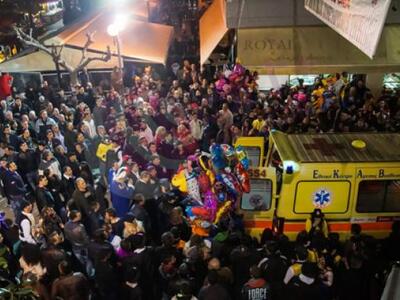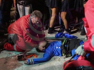 Στην πρώτη βλέπετε τον άτυχο 25χρονο τυρναβίτη που έπεσε από ψηλά από το άρμα-αεροπλάνο με αποτέλεσμα να χτυπήσει σοβαρά στο κεφάλι.
