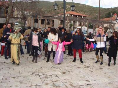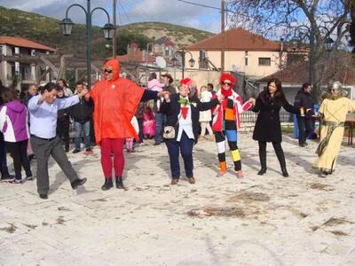 Η συνέχεια δόθηκε την τελευταία Κυριακή της αποκριάς 2 Μαρτίου 2014 το μεσημέρι στην πλατεία του χωριού για το καθιερωμένο καρναβαλικό γλέντι με τη συμμετοχή καρναβαλιστών και πλήθος κόσμου. Ο Σύλλογος προσέφερε ψητούς μεζέδες, άφθονο κρασί και το κέφι συνεχίστηκε μέχρι αργά το απόγευμα.