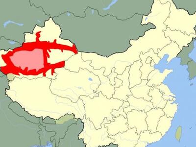 Ο χάρτης δείχνει που ομιλείται η γλώσσα των Ουιγούρων: