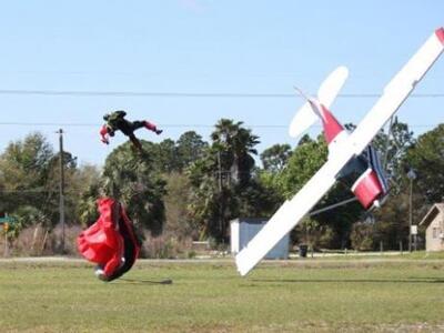 Ένα παράξενο... σκηνικό εκτυλίχθηκε το Σάββατο σε αεροδρόμιο της Φλόριντα στις Ηνωμένες Πολιτείες, όταν ένα αεροσκάφος Cessna «συναντήθηκε» στον αέρα με έναν αλεξιπτωτιστή.