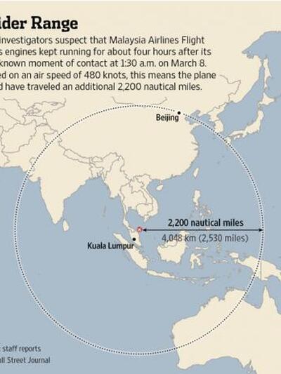 Το δημοσίευμα της έγκυρης Wall Street Journal αναφέρει ότι το αεροπλάνο με 239 επιβαίνοντες ενδεχομένως να ταξίδεψε 3.500 επιπλέον χιλιόμετρα (περίπου 2.200 μίλια) υπό αδιευκρίνιστες συνθήκες κι ίσως να πλησίασε την Πακιστανική μεθόριο ή σε κάποιον προορισμό στον Ινδικό Ωκεανό ή στην Αραβική Θάλασσα.