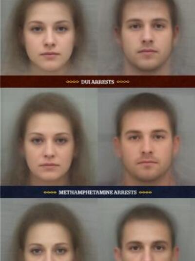 Για το κάθε σκίτσο προσώπου στο παρακάτω γράφημα, συγχωνεύθηκαν με τη χρήση του λογισμικού, 100 φωτογραφίες παραβατών.