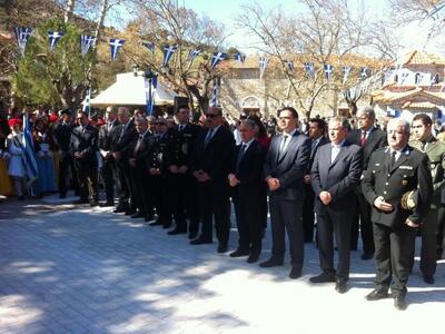 Ο Δήμαρχος Καλαβρύτων κ. Γιώργος Λαζουράς, εκφώνησε τον πανηγυρικό της ημέρας και αφού τόνισε, ότι τα Καλάβρυτα είναι η πρώτη πόλη της Ελλάδας που απελευθερώθηκε στις 21 Μαρτίου, και η απελευθέρωσή της αποτέλεσε τη σπίθα που άναψε τη φωτιά του αγώνα κατά της Τουρκοκρατίας και μεταλαμπαδεύτηκε στη συνέχεια και στις υπόλοιπες πόλεις που ακολούθησαν (Πάτρα 22 Μαρτίου, Καλαμάτα 23 Μαρτίου, κ.ά.) και έτσι γενικεύθηκε ο εθνικοαπελευθερωτικός αγώνας.