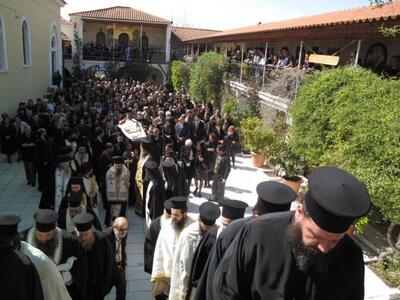 Η εξόδιος ακολουθία ετελέσθη προεξάρχοντος του Σεβ. Μητροπολίτου μας κ.κ. Χρυσοστόμου με τη συμμετοχή του Ηγουμένου Αρχιμ. π. Συμεών Χατζή, των αδελφών της Ιεράς Μονής, άλλων Ηγουμένων Ιερών Μονών και Ιερέων της Μητροπόλεώς μας.Πλήθη πιστών κατέφθασαν στην Ιερά Μονή δια να αποχαιρετίσουν τον π. Χριστοφόρο, που τόσο αγάπησαν.