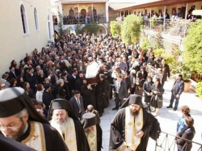 Κατανυκτική και συγκινητική ήταν η ατμόσφαιρα τόσο κατά την ταφή του π. Χριστοφόρου Μειντανά, στο κοιμητήριο της Μονής Γηροκομείου όσο και τη νύχτα στην ιερά αγρυπνία που τελέστηκε στο καθολικό.