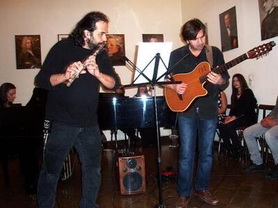 Η καθηγήτρια της Φωνητικής, Χρύσα Πανταζοπούλου με τους μαθητές της, η πιανίστα Λούση Χριστοδούλου και οι καθηγητές του φλάουτου και της ηλεκτρικής κιθάρας, Σέργιος Σοιλές και Βασίλης Τζιατζιάς, παρουσίασαν έργα και αυτοσχεδιασμούς για τραγούδι, φλάουτο και ηλεκτρική κιθάρα, που καταχειροκροτήθηκαν
