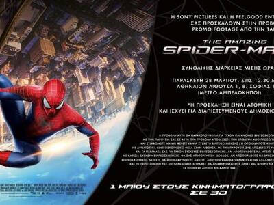 Τέλος η Sony Pictures και η εταιρεία διανομής Feelgood Entertainment αυτή την Παρασκευή 28 Μαρτίου 2014 αμέσως μετά την δημοσιογραφική προβολή του εντυπωσιακού όπως λέγεται φιλμ «Captain America 2, Ο Στρατιώτης του Χειμώνα» με τους Κρις Έβανς, Σκάρλετ Γιόχανσον, Σάμιουελ Τζάκσον και Ρόμπερτ Ρέντφορντ που θα βγει στις Ελληνικές αίθουσες την προσεχή Πέμπτη 3 Απριλίου (αναμένεται και στα Ster Cinemas, στην Βέσο Μάρε στην Πάτρα), θα δείξουν στις 12.30 το μεσημέρι στην αίθουσα Αθήναιον, στην Βασιλίσσης Σοφίας, στην Αθήνα προωθητικό footage υλικό από το blockbuster κόμικ φιλμ «The Amazing Spiderman 2» σε σκηνοθεσία Μαρκ Γουέμπ με τον Άντριου Γκάρφιλντ και πάλι στον βασικό ρόλο.