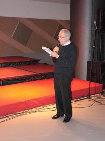 Την εκδήλωση παρουσίασε με το μοναδικό του τρόπο ο πολύς Αλέξης Κωστάλας. Μάλιστα στο περιθώριο της συνάντησης ο κ. Κωστάλας συνομίλησε με μαθητές της χορωδίας για την υπέροχη μουσικότητα των γλωσσών!