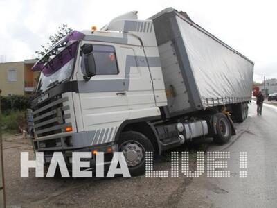 Στο σημείο επενέβη το Τμήμα Τροχαίας Πύργου, όπου το προσωπικό τοποθέτησε κώνους για να επισημάνει την επικινδυνότητα στο σημείο, αφού η νταλίκα βρίσκεται η μισή στο δρόμο.