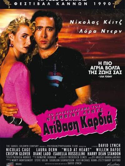 Η αυλαία πέφτει απόψε, σε 3 προβολές, στις 18.00, στις 20.15 και στις 22.30, στην αίθουσα 3 των Ster Cinemas, στη Βέσο Μάρε, στην Ακτή Δυμαίων, με την ταινία «Ατίθαση Καρδιά - WILD AT HEART», παραγωγής 1990 και διάρκειας 125 λεπτών.