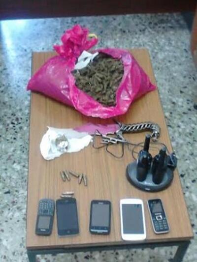 Κατασχέθηκαν μεταξύ άλλων 872 γραμμάρια κάνναβης, ένα μαχαίρι και πέντε κινητά τηλέφωνα