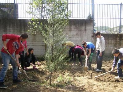 Στα πλαίσια του προγράμματος Περιβαλλοντικής Εκπαίδευσης "Χορεύοντας τη φύση, γίνομαι ενεργός πολίτης", οι μαθητές του Γυμνασίου Σταυροδρομίου του Δήμου Ερυμάνθου διαμόρφωσαν τον κήπο του σχολείου τους. Την Παρασκευή, 13 Απριλίου πραγματοποίησαν το τελικό στάδιο του προγράμματος για τη φετινή σχολική χρονιά. Για 3 περίπου ώρες, οι μαθητές μαζί με τις υπεύθυνες καθηγήτριες έσκαψαν, σκάλισαν, ετοίμασαν τον χώρο και φύτεψαν καλλωπιστικά και αρωματικά φυτά, τα οποία πολύ ευγενικά παραχώρησε ο κ. Σταυρόπουλος Νίκος από το φυτώριο του: μολόχες, μαργαρίτες, γιασεμιά, λεβάντα, θυμάρι, βαλσαμόχορτο, στέβια, δυόσμος, δεντρολίβανο είναι κάποια από τα είδη που φυτεύτηκαν. Για λίπασμα οι μαθητές χρησιμοποίησαν κομπόστ από τον κομποστοποιητή του σχολείου που κατασκευάστηκε κατά τη διάρκεια του περσινού προγράμματος.