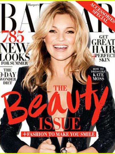 Η Kate Moss ποζάρει, με ένα από τα jacket που έχει σχεδιάσει η ίδια για το Topshop, στο εξώφυλλο του Harper’s Bazaar για το τεύχος Μαΐου που θα κυκλοφορήσει στις 22 Απριλίου.