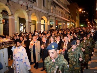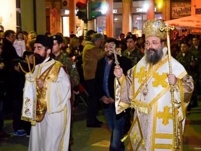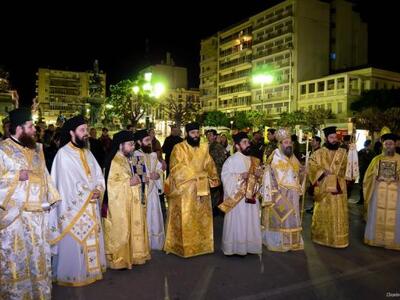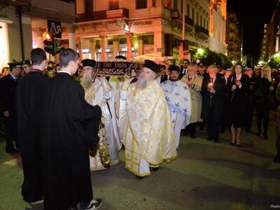 Με κατάνυξη έγινε χθες το βράδυ η περιφορά του Επιταφίου της Μητρόπολης Πατρών Χοροστατούντος του Μητροπολίτη Πατρών κκ. Χρυσοστόμου.