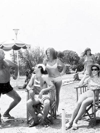 Ο Κώστας Βουτσάς και η Μάρθα Καραγιάννη σε σκηνή από την ταινία «Νύχτα γάμου» γυρισμένη στα «Αστέρια» της Γλυφάδας. Η δεκαετία του ’60 ήταν η εποχή της μεγάλης αίγλης για το θρυλικό συγκρότημα και την παραλία, στην οποία σύχναζαν κυρίως οι γόνοι της αθηναϊκής ελίτ