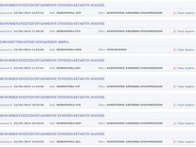 Στη «Διαύγεια» έχουν αναρτηθεί δεκάδες ονομαστικές, για τον κάθε υπάλληλο, εντολές προς τις αρμόδιες ΔΟΥ για την πίστωση στο λογαριασμό τους του επιδόματος των 1.500 ευρώ, με τίτλο «Οικονομική ενίσχυση εργαζομένου συνεπεία εκτάκτου ανάγκης».