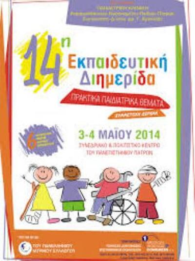 Η 14η Εκπαιδευτική Διημερίδα Παιδιατρικής που διοργανώνει η Παιδιατρική Κλινική του Καραμανδανείου Νοσοκομείου Παίδων Πατρών, θα πραγματοποιηθεί στο Συνεδριακό & Πολιτιστικό Κέντρο Πανεπιστημίου Πατρών στις 3 & 4 Μαΐου 2014.