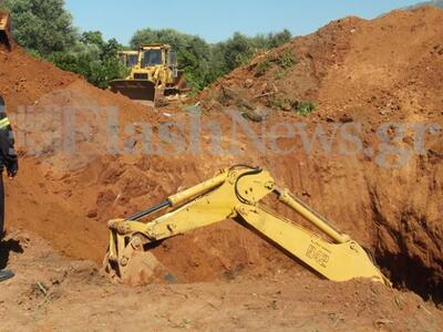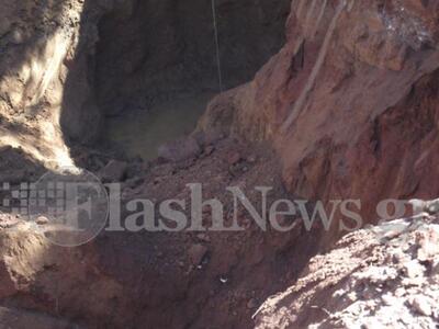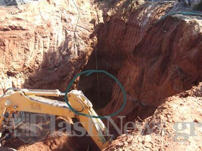 Σε βάθος περίπου 14 μέτρων έχει φτάσει ο τεράστιος λάκκος διαστάσεων 30 επι 30 μέτρων τον οποίο ανοίγουν οι εκσκαφείς στο περιβόλι όπου ήταν το πηγάδι στο βάθος του οποίου βρίσκεται θαμμένος ο 39χρονος εργάτης που καταπλακώθηκε απο μεγάλο όγκο χωμάτων.