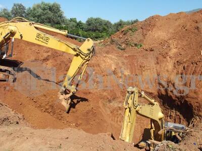 Τα μηχανήματα έχουν φτάσει σε τέτοιο βάθος με αποτέλεσμα κάτω από τις μπουλντόζες να έχουν εμφανιστεί νερά και το έδαφος να κρίνεται σαθρό.