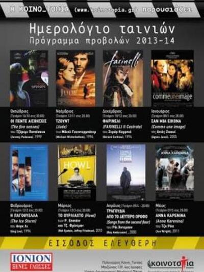 Η Εταιρεία Κοινωνικής Δράσης και Πολιτισμού Κοινο_Τοπία (www.koinotopia.gr) ολοκλήρωσε για 4η χρονιά τον κύκλο προβολών της με τίτλο «Ημερολόγιο ταινιών» την περασμένη Τετάρτη 7 Μαΐου 2014 με την προβολή της ταινίας «Άννα Καρένινα - Anna Karenina» του Τζο Ράιτ (Joe Wright).