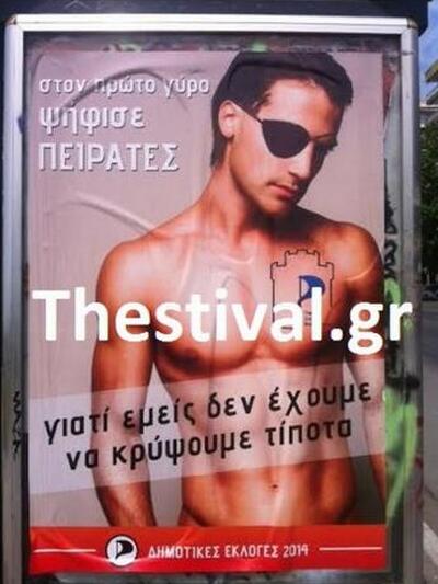 Οι ξεχωριστές και πρωτότυπες για πολιτικό συνδυασμό, αφίσες των "Πειρατών στη Θεσσαλονίκη" ενόψει των αυτοδιοικητικών εκλογών, έχουν τραβήξει την προσοχή των πολιτών, καθώς σε αυτές ποζάρουν γυμνά μοντέλα.