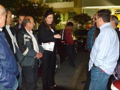 Με την ευκαιρία της επίσκεψης της στο εκλογικό κέντρο συνομίλησε με οδηγούς ταξί που τα οχήματα τους ήταν σταθμευμένα μπροστά από το εκλογικό κέντρο, στο πάνω μέρος της πλατείας Γεωργίου. Η συζήτηση πραγματοποιήθηκε σε πολύ καλό κλίμα και περιστράφηκε σε ζητήματα σχετικά με την γενικότερη οικονομική και πολιτική κατάσταση.