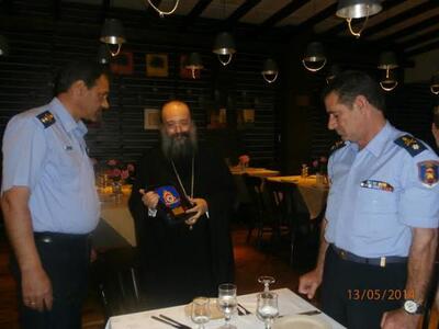 Παρόντες ήσαν άπαντες οι τα πρώτα φέροντες στο Πυροσβεστικό Σώμα και στην εν λόγω ομάδα ενώ ο Συντονιστής Επιχειρήσεων Περιφερειακών Πυροσβεστικών Διοικήσεων Δυτικής Ελλάδος, Πελοποννήσου & Ιονίων Νήσων, Υποστράτηγος Ιωάννης Καρατζάς, προσέφερε στον σεβασμιώτατο Μητροπολίτη Πατρών το έμβλημα του Πυροσβεστικού Σώματος.