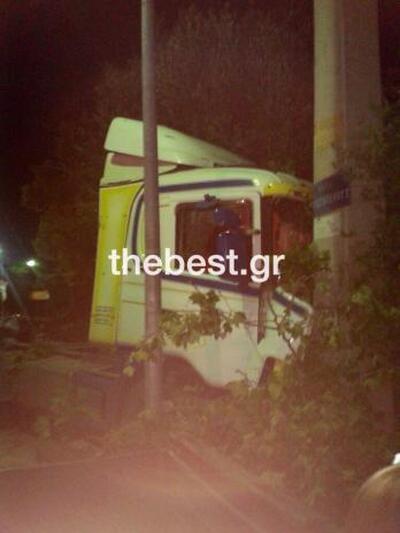 Νταλίκα εξετράπη της πορείας της και βγήκε από τον δρόμο στον κόμβο του Carrefour στην σχετική έξοδο της περιμετρικής.