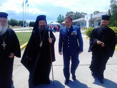 Ο σεβασμιώτατος Μητροπολίτης Πατρών κ.κ. Χρυσόστομος χοροστάτησε στην εκκλησιαστική τελετή και ευχήθηκε τα δέοντα στον αποχωρήσαντα Διοικητή της μονάδας Ιωάννη Ποδιώτη καθώς και στο νέο Διοικητή που ανέλαβε καθήκοντα, κ. Πέτρο Χατζήρη.