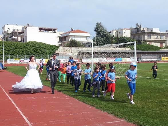 Nύφη και γαμπρός λίγο πριν ανεβούν τα σκαλιά της εκκλησίας