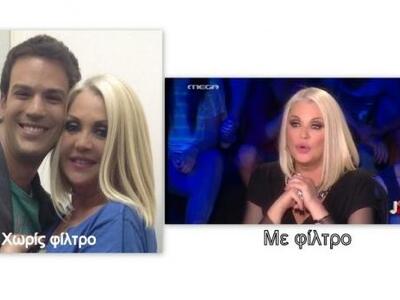 Τόσο πολύ που λέω μέσα μου; Ρε μπάς και είναι η Ρούλα 30 χρόνια πρίν; Ευτυχώς δηλαδή που υπάρχουν και οι selfie στα καμαρίνια και μπορεί κανείς να δει την πραγματική εικόνα της παρουσιάστριας.
