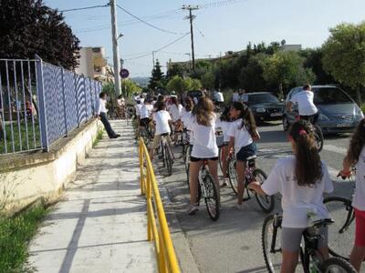 Ακολούθησε βόλτα 2 km με ποδήλατα στους δρόμους της γειτονιάς μας με την αρωγή μελών του Σώματος Εθελοντών Σαμαρειτών, Διασωστών και Ναυαγοσωστών του Ελληνικού Ερυθρού Σταυρού Πάτρας και δίκυκλης μοτοσυκλέτας από το τμήμα Τροχαίας Πατρών με τη συμμετοχή περίπου 130 ποδηλατιστών αποτελούμενη από μαθητές, εκπαιδευτικούς και γονείς.