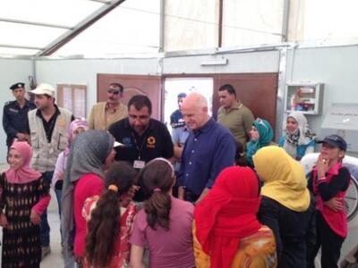 Στη συνέχεια, ο Γιώργος Παπανδρέου, επισκέφτηκε τον προσφυγικό καταυλισμό Αλ Άζρακ. Ο καταυλισμός αυτός, θεωρείται πρότυπος σε παγκόσμιο επίπεδο τόσο στο επίπεδο της κατασκευής όσο και σε αυτό της λειτουργίας του. Οι Ιορδανικές αρχές, σε συνεργασία με το UNHCR, λαμβάνοντας υπόψη την εμπειρία από τους προηγούμενους καταυλισμούς, δημιούργησαν με τη συνεισφορά της διεθνούς κοινότητας, μονάδες φιλοξενίας που διασφαλίζουν μια αξιοπρεπή διαβίωση στους πρόσφυγες και περιλαμβάνουν σχολείο, κέντρο υγειονομικής περίθαλψης και χώρους απασχόλησης για τα παιδιά.