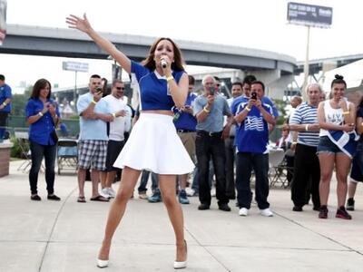 Η ομογενής τραγουδίστρια ντύθηκε στα γαλανόλευκα, πήρε το μικρόφωνο, στάθηκε μπροστά στις ενδεκάδες των δυο ομάδων και "εκτέλεσε" τον Εθνικό Ύμνο!