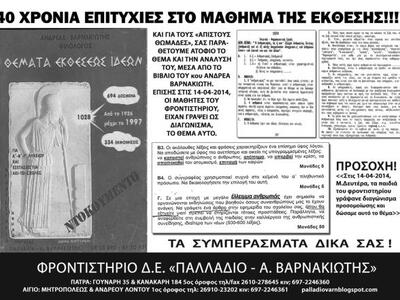 Για πολλοστή χρονιά, το φροντιστήριο "Παλλάδιο-Α.Βαρνακιώτης" πέφτει μέσα στο θέμα της Έκθεσης των Πανελλαδικών Εξετάσεων και μάλιστα με απόλυτη ακρίβεια.