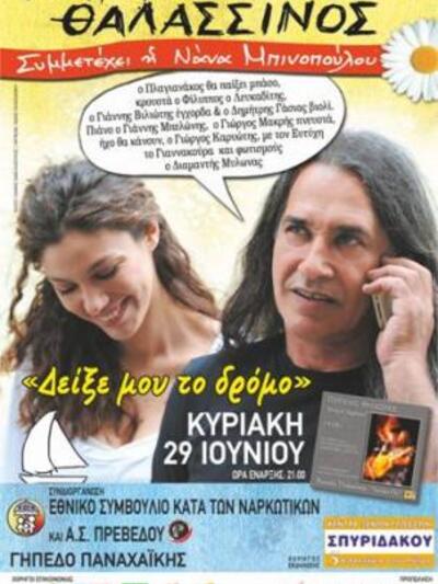 Το Εθνικό Συμβούλιο κατά των Ναρκωτικών - (ΕΣΥΝ ) Παράρτημα Πάτρας και το Α.Σ. ΠΡΕΒΕΔΟΥ ΤΗΣ ΠΓΕ διοργανώνουν μια ξεχωριστή συναυλία με τον εκλεκτό τραγουδοποιό Παντελή Θαλασσινό στο στάδιο της Παναχαικής, την Κυριακή 29 Ιουνίου και ώρα 21:00, αφιερωμένη στη Παγκόσμια Ημέρα Κατά των Ναρκωτικών.
