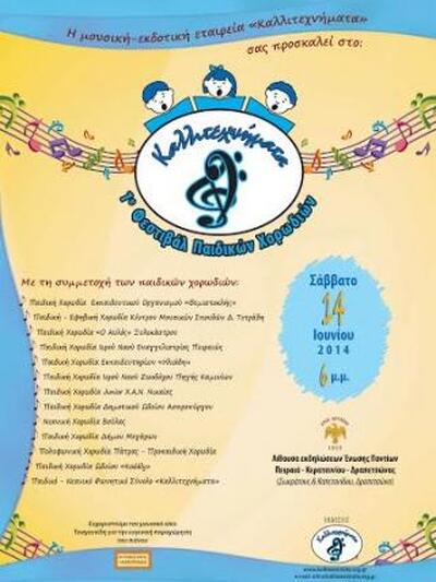 Αυτό το Σάββατο 14 Ιουνίου 2014, η Προπαιδική χορωδία του καλλιτεχνικού Ομίλου της Πολυφωνικής της Πάτρας θα λάβει μέρος στο 1ο Φεστιβάλ Παιδικών Χορωδιών «Καλλιτεχνήματα», που θα πραγματοποιηθεί μετά τις 6 το απόγευμα, στη Δραπετσώνα στην αίθουσα εκδηλώσεων της Ένωσης Ποντίων Κερατσινίου, Πειραιά και Δραπετσώνας.