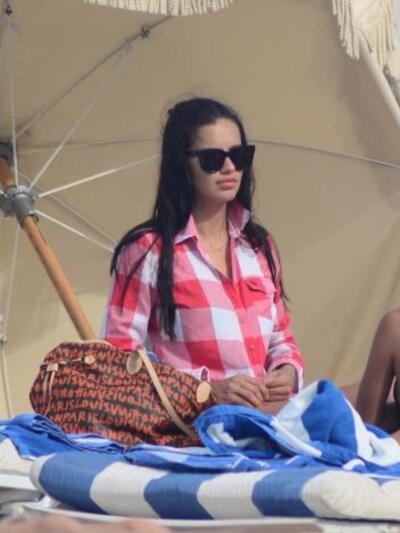 Χωρίς δαχτυλίδια στα δάχτυλα λοιπόν, η 33χρονη καλλονή απόλαυσε τον ήλιο και τη θάλασσα με το πράσινο μπικίνι της, ενώ λίγο μετά φόρεσε ένα εξίσου όμορφο κόκκινο καρό πουκάμισο.