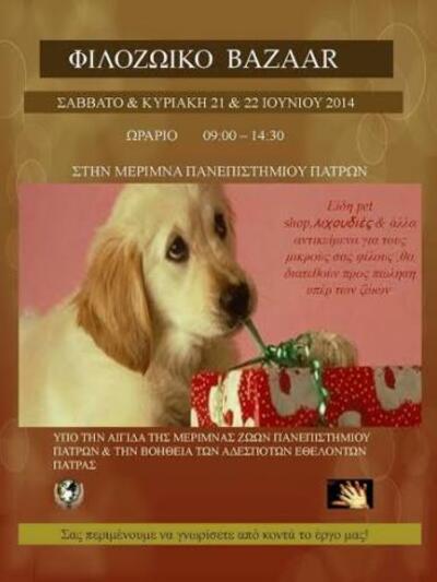 «Το καλοκαιράκι έφτασε και φυσικά δεν μπορούσαμε να αφήσουμε έτσι τους τετράποδους φίλους μας! Γι' αυτό σας περιμένουμε όλους το Σαββατοκύριακο 21/6 και 22/6/14 στις εγκαταστάσεις του Σταθμού Μέριμνας Ζώων του Πανεπιστημίου Πατρών στο Ρίο και ώρες 9:00πμ- 14:30μμ.