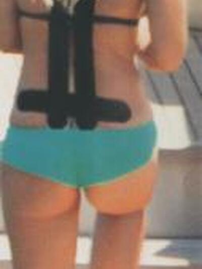 Ο ωραίος συνδυασμός μαύρου και γαλάζιου μπικίνι και κυρίως το καλλίγραμμο σώμα της τράβηξαν τα βλέμματα στο κατά τα άλλα ήσυχο νησί, ενώ για να μην επιβαρύνει τη μέση της, η Ελεονώρα φόρεσε ειδικά pads που την προστάτευαν από τις απότομες κινήσεις.