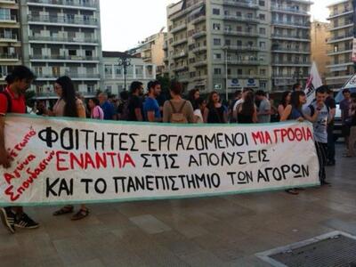 Απαιτούμε: Καμία απόλυση μόνιμη και σταθερή δουλειά για όλους Αποκλειστικά Δημόσια και Δωρεάν Παιδεία.