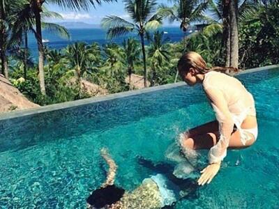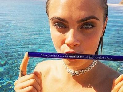 Με φακούς και σήματα οδικής κυκλοφορίας να κρύβουν τη γύμνια της, με βουτιές στην πισίνα πάνω στον Sebastian και topless πόζες στο κύμα, η Cara μας έδωσε μέσω instagram εικόνες μάλλον πιο ενδιαφέρουσες από τις επίσημες που θα προκύψουν.