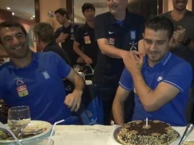 Πέρα από τα μέλη της εθνικής που τραγούδησαν το "Χρόνια Πολλά" στον παίκτη, στη γιορτή συμμετείχε και το προσωπικό του ξενοδοχείου στο Αρακαζού της Βραζιλίας που τραγούδησε μάλιστα και στα βραζιλιάνικα για τον "Κατσούρ"!