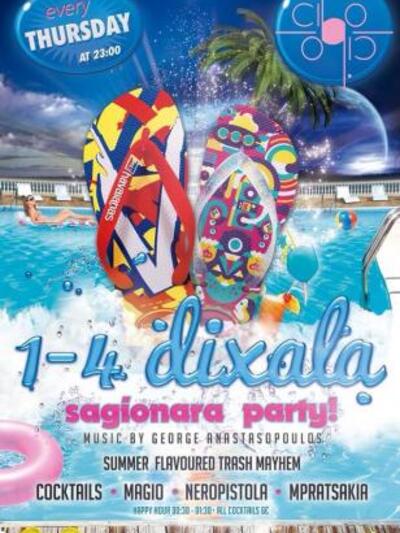 Με άκρως καλοκαιρινό mood, φορέστε το μαγιώ σας, πάρτε τα μπρατσάκια σας, σωσίβια, τα νεροπίστολα και απαραίτητα σαγιονάρα... 1-4 Dixala!