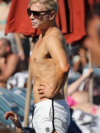 Ο showman έκανε τα πρώτα του μπάνια και οι φωτογράφοι έβγαλαν αρκετές φωτογραφίες. Όπως φαίνεται, ο ίδιος προστάτεψε και τον εαυτό του από τις υπεριώδεις ακτίνες του ήλιου, βάζοντας μια γερή δόση αντιηλιακού στο πρόσωπό του!