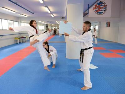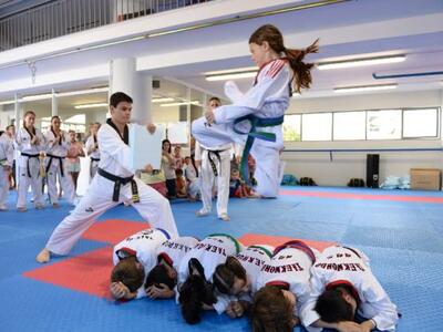 Την εκδήλωση άνοιξε η ομάδα επίδειξης Ταε κβον ντο με τους μεγάλους αθλητές και αθλήτριες του συλλόγου να εκτελούν θεαματικά άλματα με θραύσεις σανίδων και εξουδετερώσεις αντιπάλων.